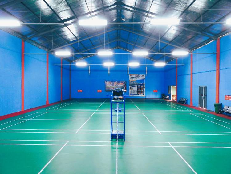 Lapangan badminton indoor dengan karpet berkualitas
